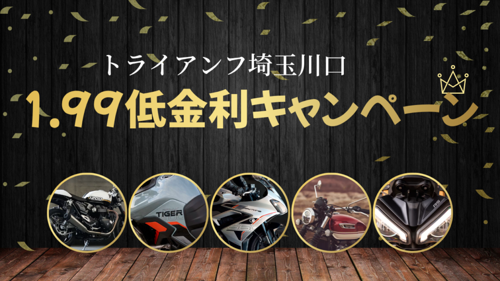現在トライアンフ埼玉川口では 皆様にお得にトライアンフオーナーになっていただけるよう 新車購入時限定オプションパーツ代を半額にさせていただくキャンペーンを 実施しています! &…