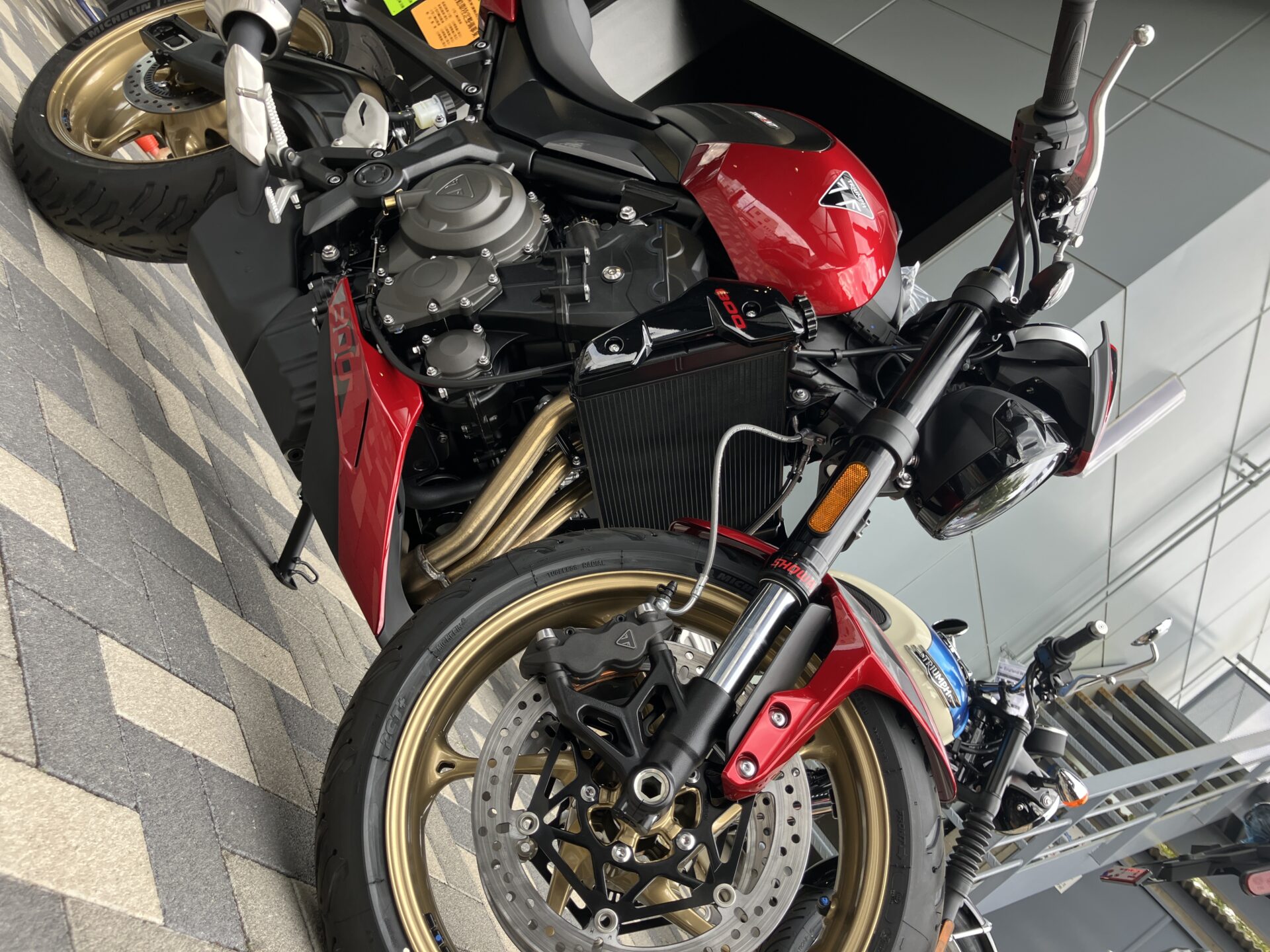 TRIUMPHのバイクは他メーカーさんと比べても写真より実車の方がかっこいいのでスタッフも楽しみです⭐