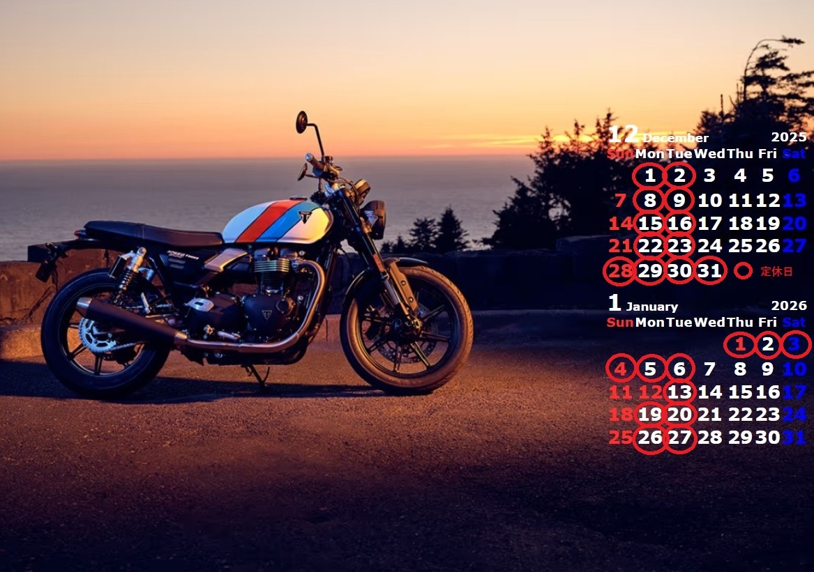 本年の最終営業日は12/27(土)となり、12/28(日)~1/6(火)はお休みとさせていただきます。